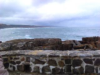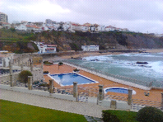 Hoje o pequeno almoço foi acompanhado com uma vista fantástica. Não sou um apaixonado pelo mar, mas tomar o pequeno almoço acompanhado do som das ondas na costa e esta linda vista... sabe bem.
