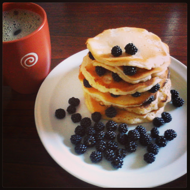 Pois, além do batido que fiz com amoras silvestres... aproveitei algumas para as panquecas.