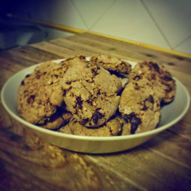 Nova receita. Biscoitos de aveia com pepitas de chocolate. Estou agora a testar uma variação com metade do açucar =)