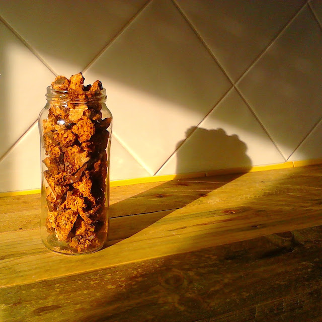 Ok, a explicação: o frasco era um frasco de manteiga de amendoim que se pode comprar no lidel, ao fim de fazer desaparecer a manteiga de amendoim toda, podemos reutilizar o frasco. Depois o processo para fazer isto é deliciosamente simples. Basta escolher o que queremos colocar lá dentro e deitar lá dentro =p